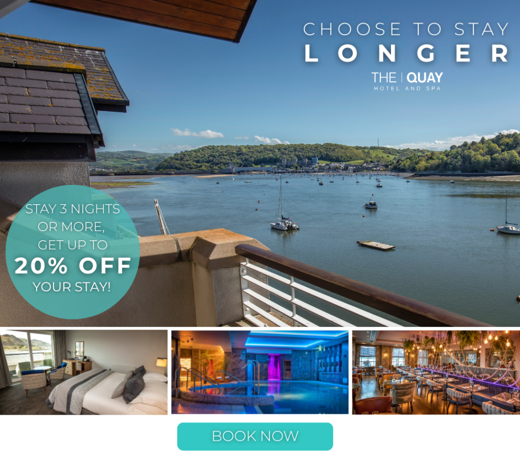 Whether you’re seeking a peaceful getaway or an adventure into the nearby Snowdonia National Park, the Quay Hotel & Spa is your perfect gateway to the natural beauty and rich history of the region.